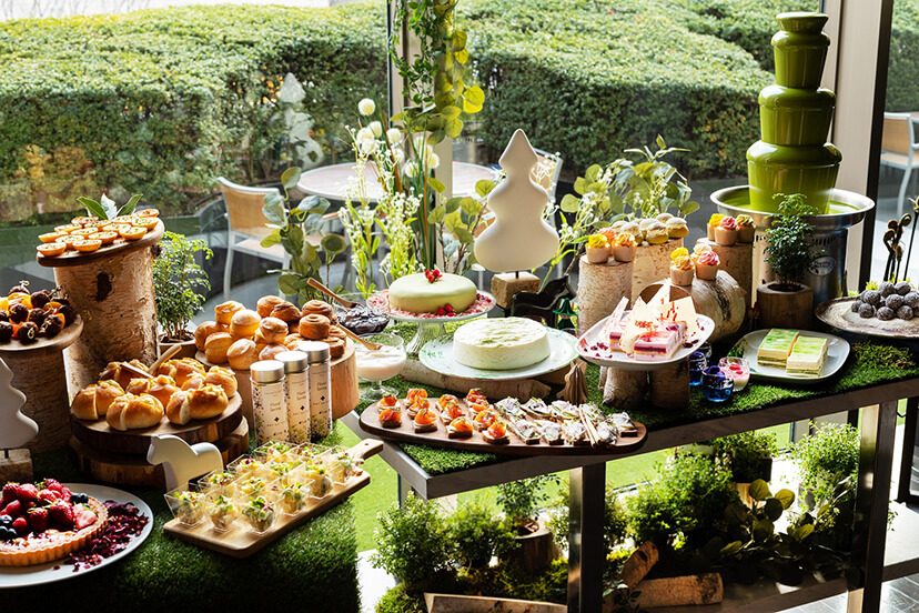 オールデイ ダイニング「フレンチ キッチン」から、 見た目にも鮮やかな抹茶をふんだんにつかったスイーツとセイボリーをお好きなだけお楽しみいただけるブッフェスタイルの「抹茶 フィーカ(※) アフタヌーンティー」が登場いたします。