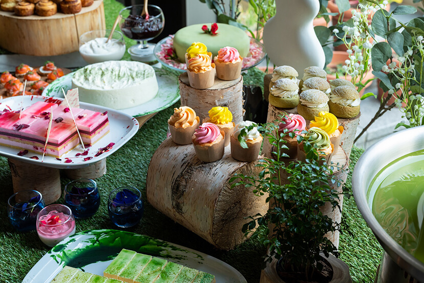 北欧の春から初夏の緑や草花をイメージ! 抹茶をつかった北欧スイーツなど16種類のアイテムが楽しめるアフタヌーンティー。