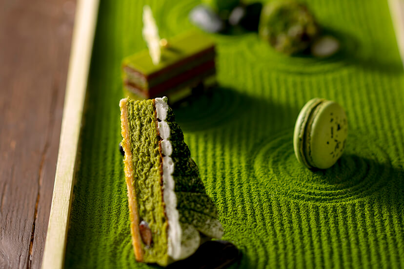 さらに“空気のように軽い泡”の料理で話題となった「エスプーマ」も登場し、 香りだけでなく食感も楽しい逸品に。 抹茶葉をお好みの料理やスイーツにお好きなだけかけて、 “自分だけの抹茶の楽しみ方”を味わっていただけます。