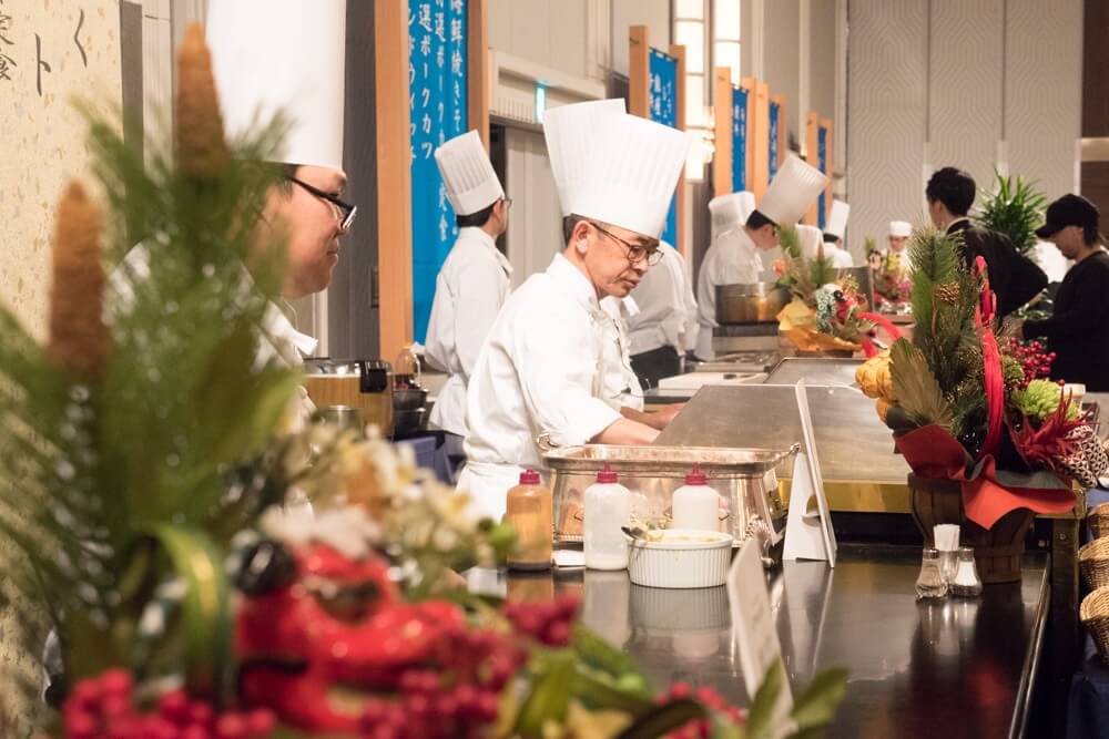 ホテルニューオータニ大阪では、2020年1月1日(元旦)~3日(金)の期間、家族で愉しむお正月として新春“最強”グルメビュッフェ『グルナジー2020』を開催します。さらに、2020年1月3日(金)には、人気ものまねタレントの”ノブ&フッキー”を迎え、スペシャルステージをお届けします。