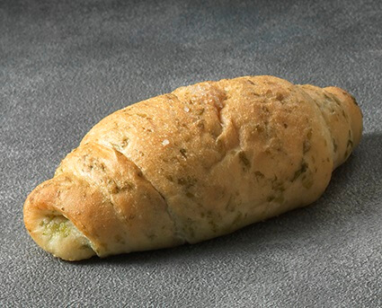 ソフトフランス生地にあおさを練り込み、西京味噌とはちみつを加えたバターを巻き込み、焼き上げました。沖縄・野甫の塩をトッピング。