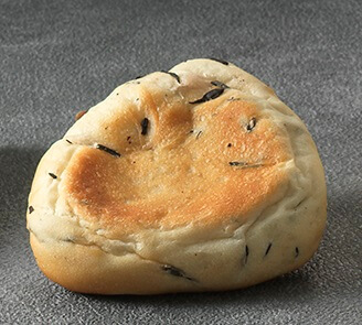 くるみを混ぜた白餡と、みたらしのたれと求肥を閉じ込め、おやきのように焼き上げたあんぱん。