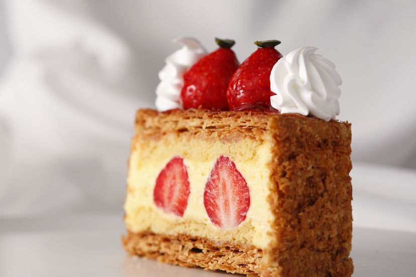 ホテル伝統のサクサクのパイ生地で、「博多あまおうⓇ」と特製カスタードクリーム、長崎県産「太陽卵」を使用したふっくらとしたスポンジをサンド。