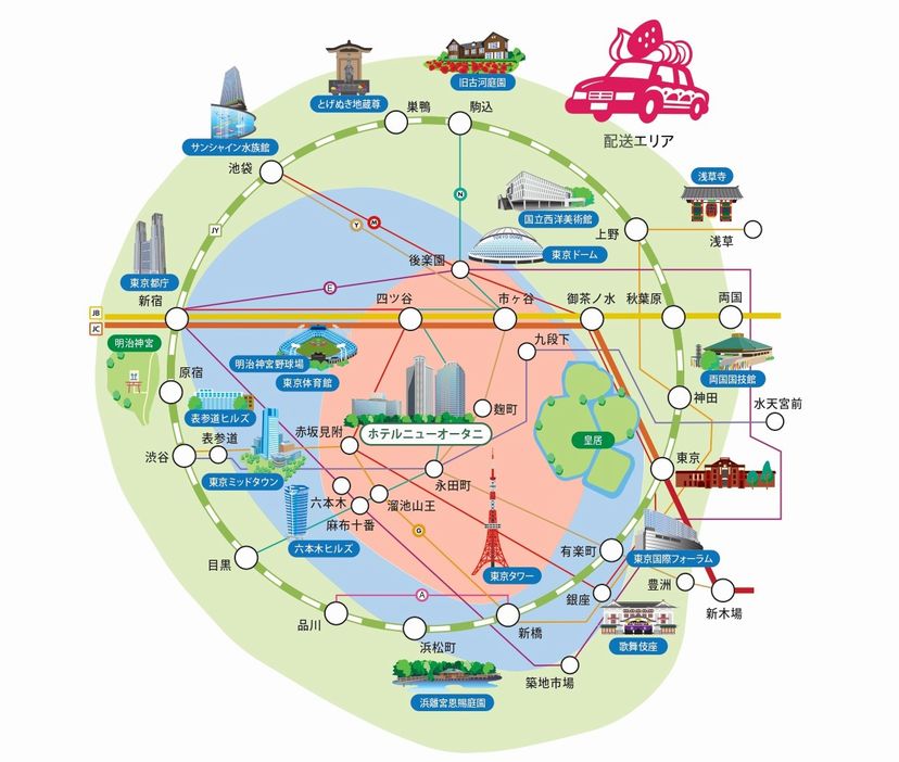 ※下記定額の指定エリア以外はホテルより1時間以内までお届けいたします。