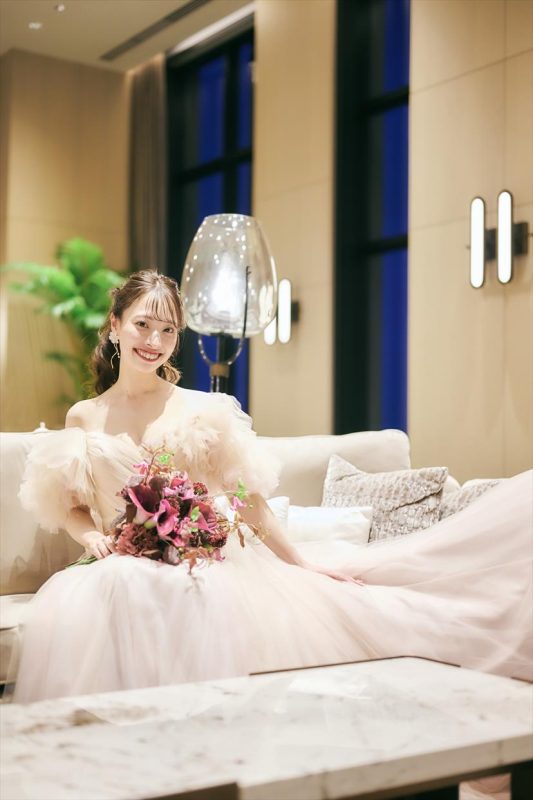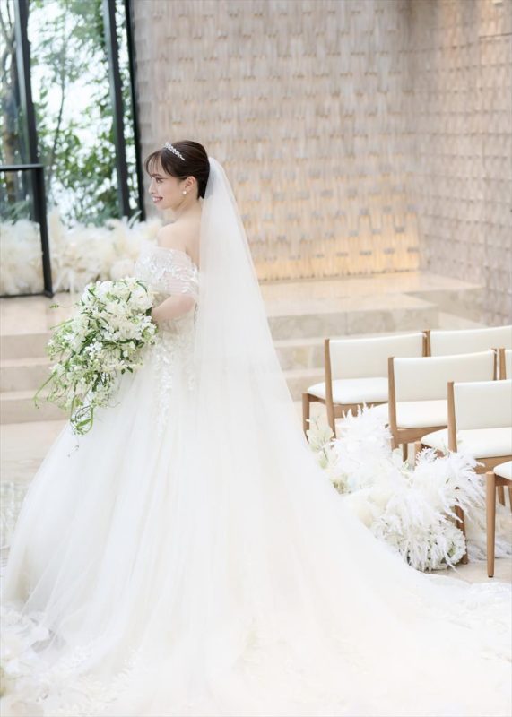 ドレス選びでは、幼い頃からの憧れであるプリンセスライン&ロングトレーン、ホテル婚らしい上品さ、季節感のあるドレスを探していました。