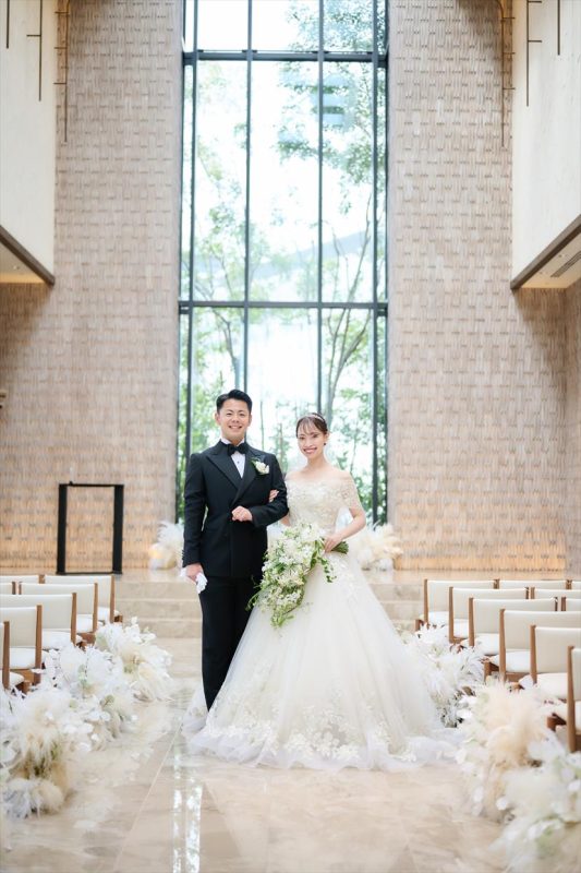 シンプルだけど計算され尽くされたチャペルは天井高が10m、大理石のバージンロードが16mもあり一歩足を踏み入れると開放感が感じられます。