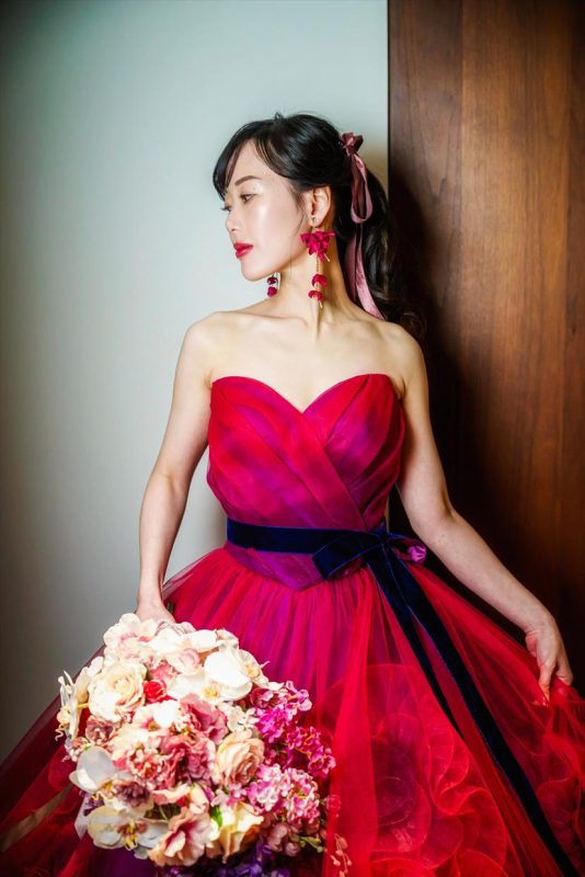 カラードレスも同様に希望のドレスを調べ、東京のショップに問い合わせると3ヶ月待ちで予定が立てるのが難しい状況に。
