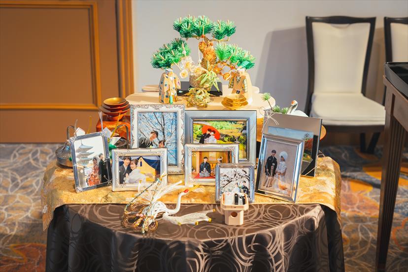 前撮りの素敵な写真たちを使って和と洋のウェルカムスペースを作りました。結婚式全体の雰囲気に合うようにアンティーク・クラシカルをテーマに仕上げました!
