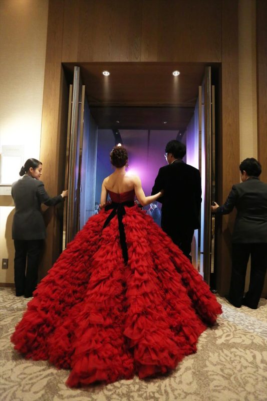 カラードレスの色味はショッキングピンクのハツコエンドウ一択のはずが、いつもの私のようであまりピンとこず、披露宴テーマがナイトクリスマスパーティだったため、赤に絞って探すことにしました!