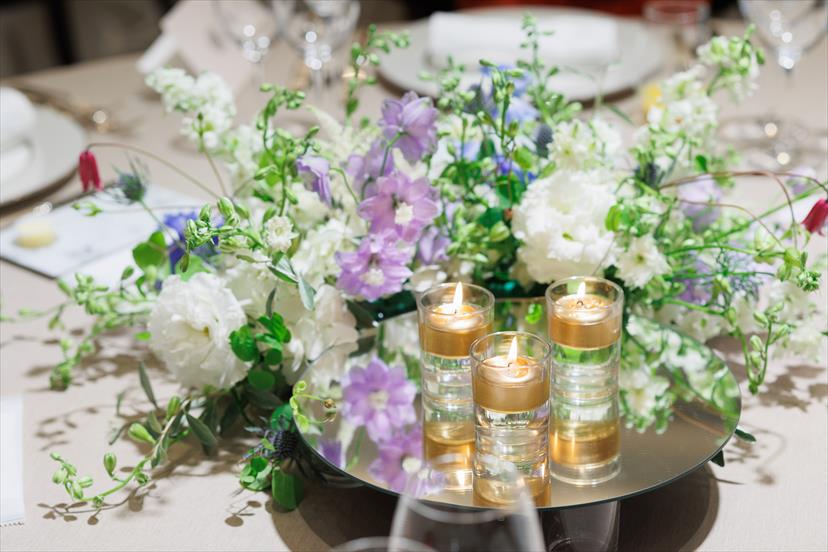 テーブルクロスの色味、キャンドルの色味もこだわりがあったため、別途お打ち合わせの機会を設けて頂きたくさん話し合いを行いました。