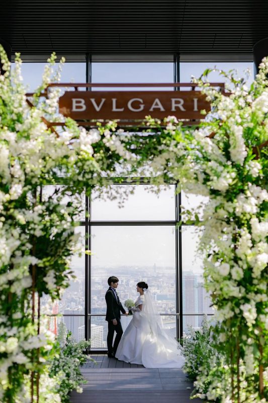 ブルガリ ホテル 東京には教会がないため、1から自分たちで考え作り上げるスタイル。自由に好きなように作ることができる点は、こだわりの強い私たちにとってはとってもよかったです。