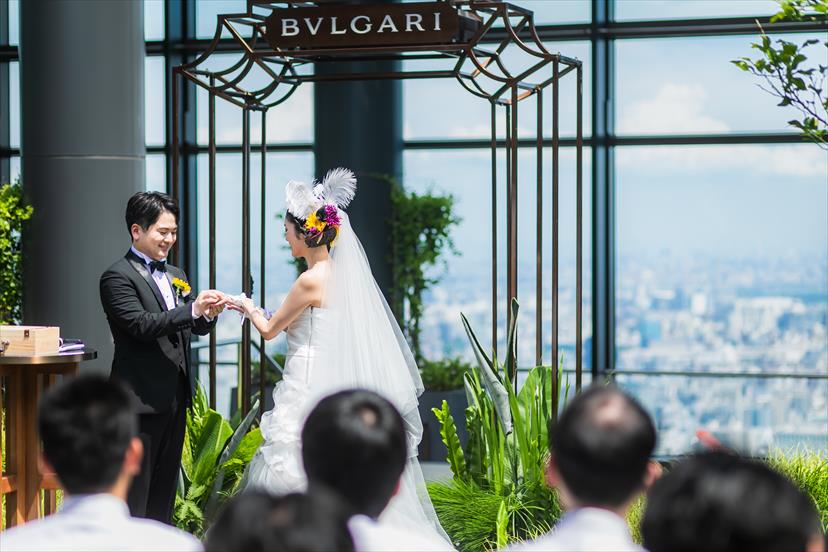 また、私はチャペルや神殿などの宗教色がある施設ではない場所で挙式をしたかったので、テラスで人前式というブルガリホテルが提案する挙式スタイルも大きな決め手になりました。