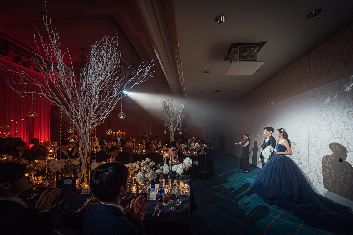 ゲストの方々に楽しんでいただけるようにバイオリンの生演奏、ムービングライトを入れました。