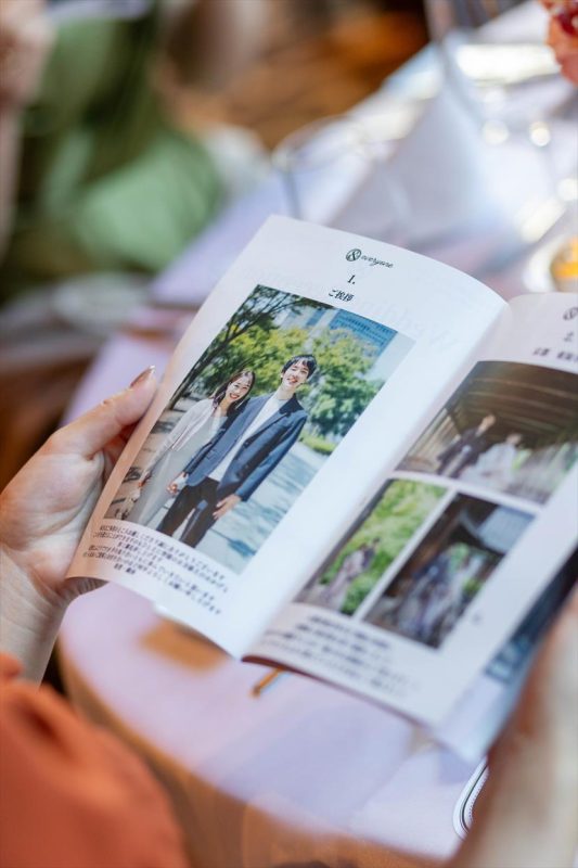 お互いの大切な人に向けて2人のことを知ってもらおうと思い、表紙を合わせた12ページ雑誌風のプロフィールブックを自作しました。