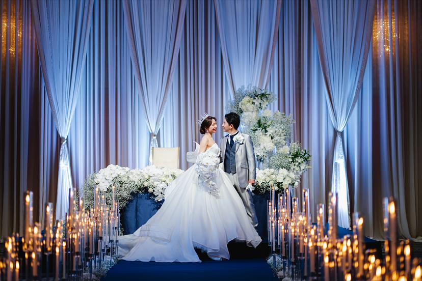 真ん中にウェディングロードを作り韓国風に、装花は冬らしさを出し幻想的にという私の希望通りの会場になり、とても感動し、ご協力頂いたスタッフ様には感謝してもしきれません!