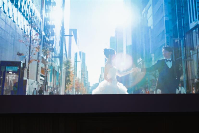 オープニングムービーとお色直し2回目のムービーは、絶対この方にお願いしたい!と決めていた前撮りで撮影したもの(三浦海岸、東京駅)を使用しました。