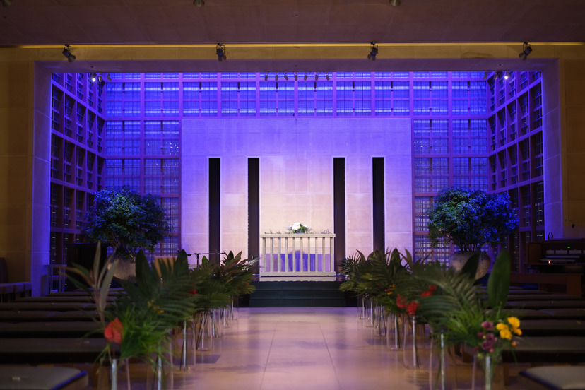 緑や華やかな花に溢れる空間を再現するために装花をアジアンテイストにしたり、聖歌隊ではなく、シンガーを依頼してギターの弾き語りを取り入れました。