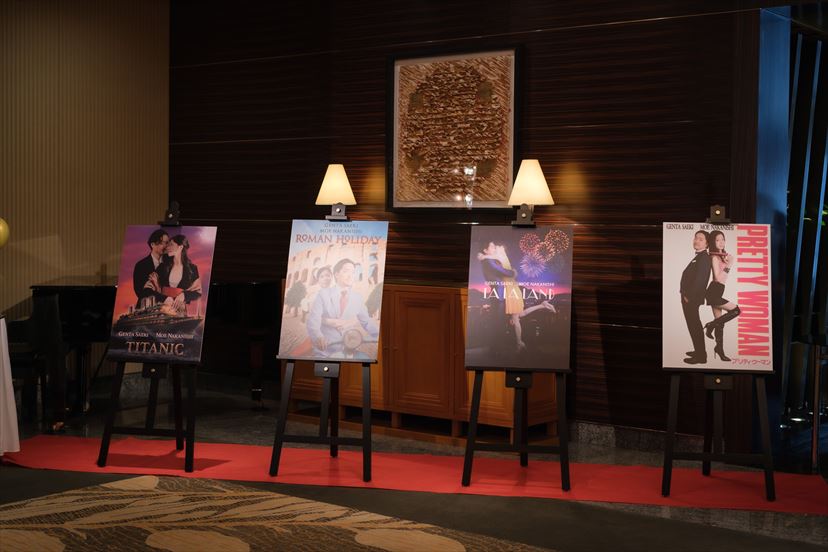 ウェルカムボードは名作映画ポスターのパロディで新郎新婦をモデルにして4枚作成しました。