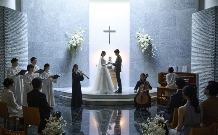 新たな文化を発信する街として、海外からも注目を集める渋谷。話題のスポットが次々と誕生し、活気に溢れるこの街にありながら緑と光に包まれたロケーションを誇るのが「セルリアンタワー東急ホテル」。地下鉄、JRはもちろんのこと空港へのアクセスも便利なことから、遠方のゲストも招待しやすいと評判。石造りの教会での結婚式を司るのは、セルリアンタワーチャーチ専任のマーク牧師。一組ひと組に心を寄せる温厚な人柄ならではの愛情に溢れた式は列席者の心にも響くはず。