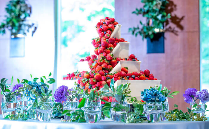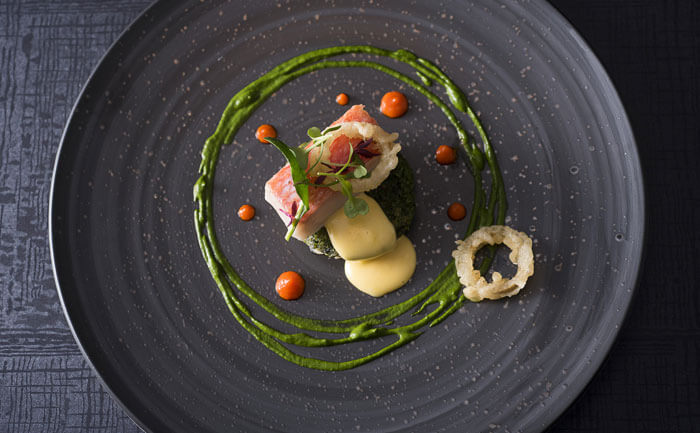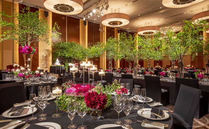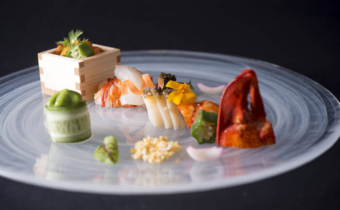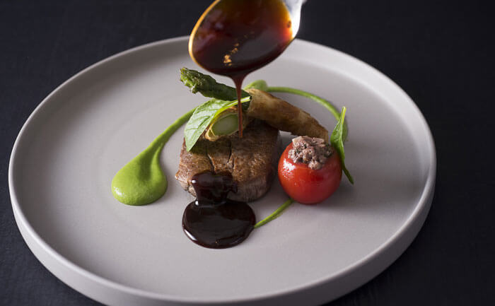 盛り付けから味付けに至るまですべてが完全オリジナルのテーラーメイドメニュー。バンケットに隣接した専用キッチンで料理を完成させるので、出来立ての状態でゲストにサーブされる。