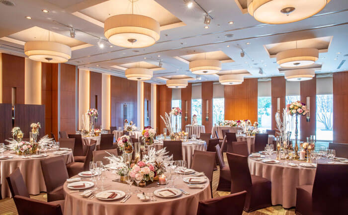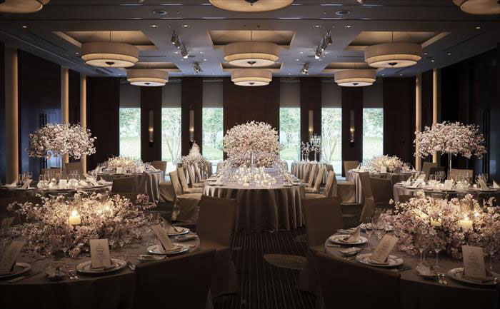 レストラン客や宿泊客が利用する棟と別の空間でウエディングを開催。プライベート感ある空間で、安心して披露宴が叶えられると評判。