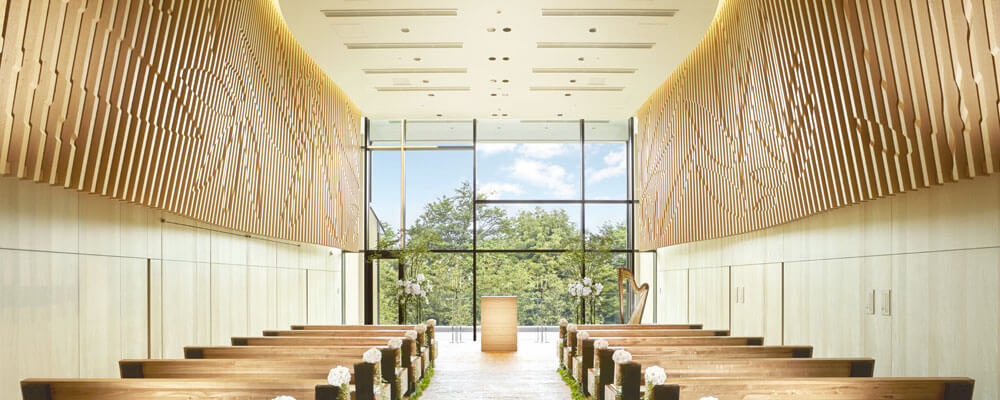 | 設備 | 新郎新婦控室、親族控室、列席者待合スペース、クローク、列席者着替室、プロジェクター、音響、照明、ピアノ、バリアフリー |