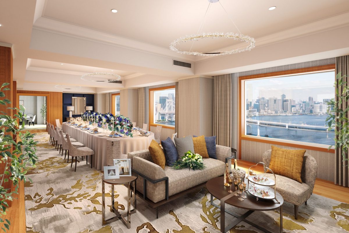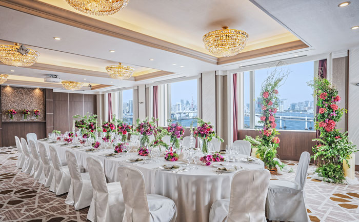 新交通ゆりかもめ台場駅直結というアクセス至便な立地にあり、都心から一番近くリゾート気分を満喫できる。上質な寛ぎの空間と絶景は、大切なゲストと過ごす特別な日にふさわしい。