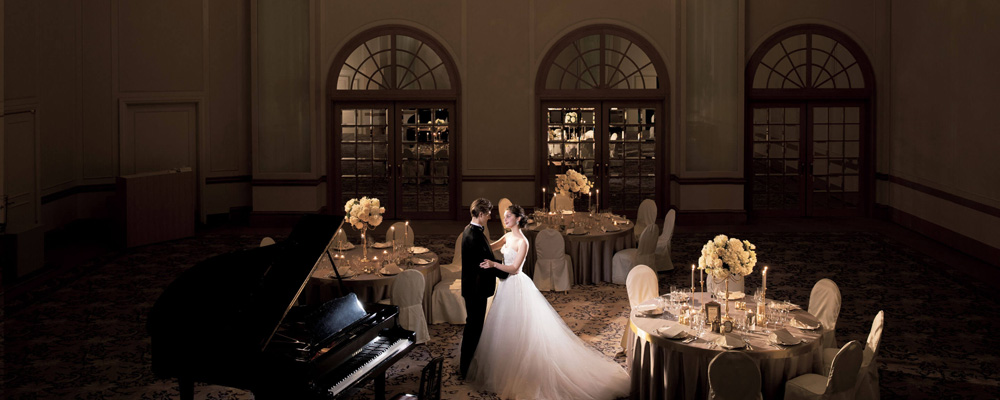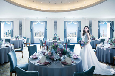 東京・品川駅からもアクセスが良く、新橋駅より徒歩2分という好立地の「第一ホテル東京」。館内にゆったりと流れる優雅な時間と美術品で彩られたラグジュアリーな空間は、まさに花嫁にふさわしい舞台。創業80余年、世代を超えて愛され続けるサービスのクオリティも人気の理由。例えば料理なら、招待状の返信はがきで、ゲスト一人ひとりが和・仏・伊からメニューを選べる「マリアージュ」はここならでは。さらに、2月のフェアでは新作の婚礼メニューを発表予定。気になる詳細は問い合わせを。