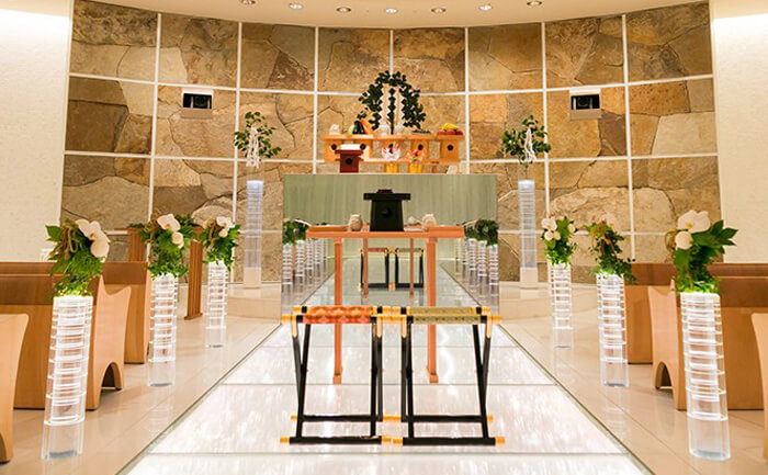 日本の粋をモダンに融合した会場。ロングテーブルと天井に布をあしらったスケール感のあるコーディネート。
