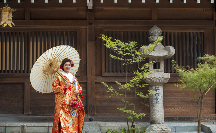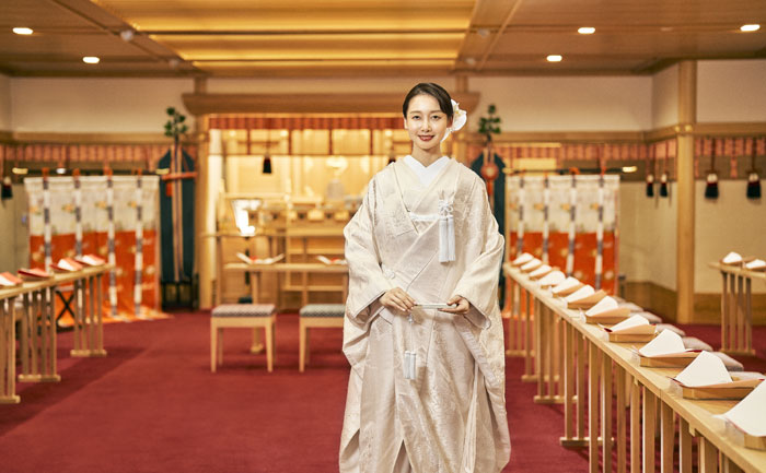日本女性の花嫁衣裳。白無垢をまとって厳かな神前式を。