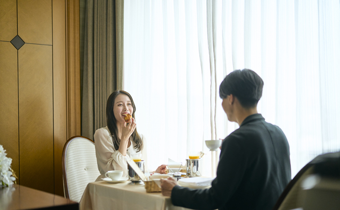 結婚式の翌朝は、ふたりでゆったり朝食を楽しんで。