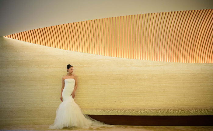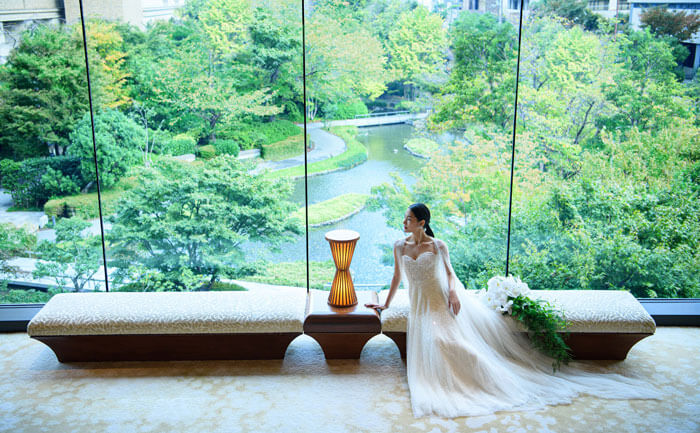 「コンテンポラリーラグジュアリー」をコンセプトに、都会的で洗練されたインテリアを数多く配し、日本の自然を現代的なデザインで表現したホテル。この唯一無二の世界観がふたりらしいお洒落なフォトシューティングを叶えてくれる。