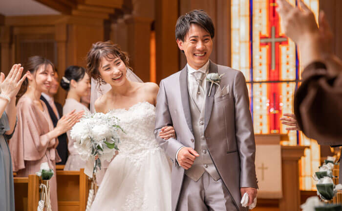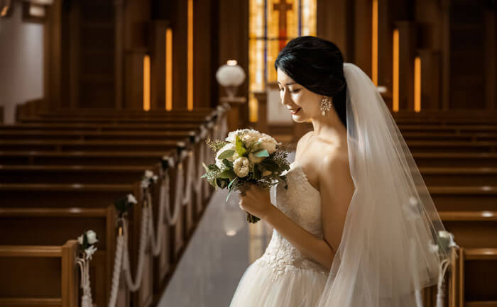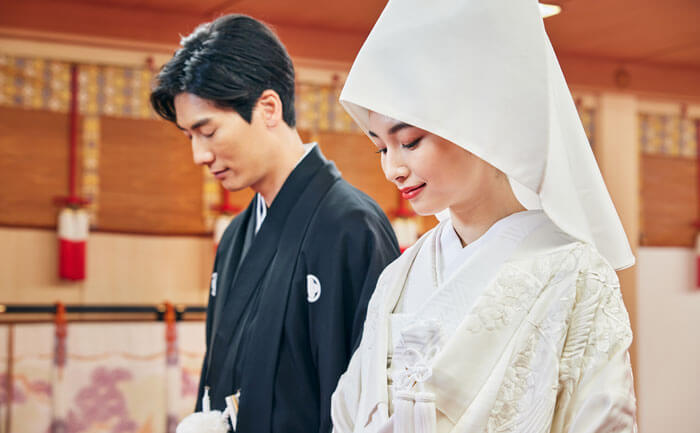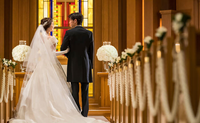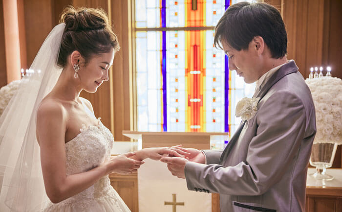 夫婦の神の前で交わす約束。大切な人に見守られ、純真な気持ちで誓いを。