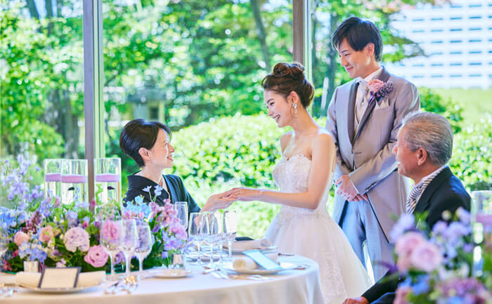 家族やゲストに見守られるなか、永遠の愛を誓って。
