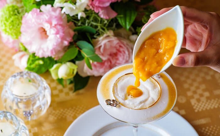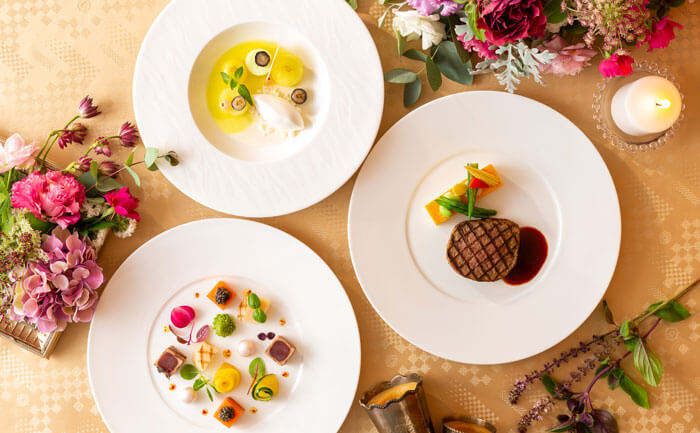 新コンセプトとともにリニューアルした“幸せが拡がるおもてなし”がテーマの4つのコースで、さまざまな「おもてなし」を表現。ホテルの歴史の一幕から生まれた逸品など伝統の味を守りつつ、新たな料理へ挑戦し続ける姿勢が一流ホテルの証。