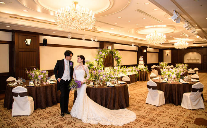 【富士の間】壮麗なシャンデリアがふたりの一日をドラマティックに演出。