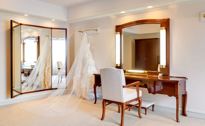 花嫁のためだけに設えられたブライズサロンは、フォトシューティングスポットとしても人気が高い。