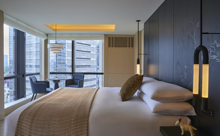 常に革新的なアートやファッション、ライフスタイルのトレンドを発信しているNYと日本の文化を融合させたホテル空間。内装はNYを拠点とするデザイン会社のロックウェルが担当し、最先端のスタイルでゲストを魅了。