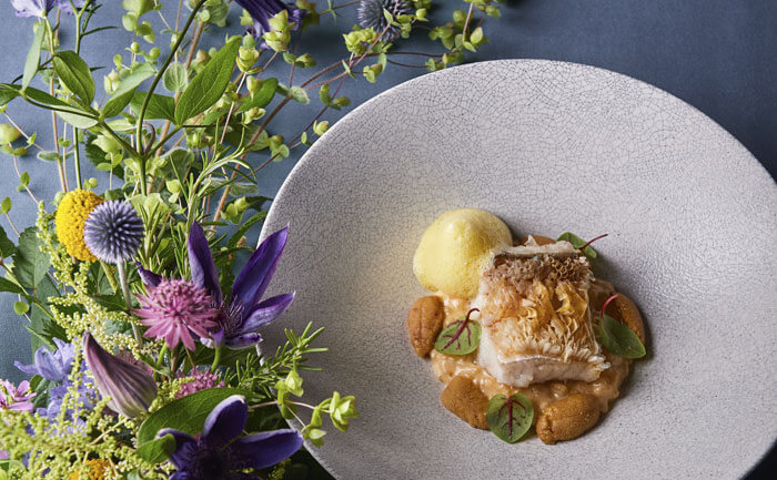 多彩な感覚と技術を備えたエグゼクティブシェフ トーマス氏がアートを軸にした6つのコースを用意。スモークが出る楽しい仕掛けや、想像を超える驚きに満ちたものなど五感を刺激する料理を提供。