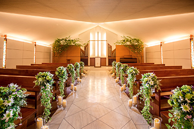| 設備 | 新郎新婦控室、親族控室、列席者待合スペース、クローク、列席者着替室、プロジェクター、音響、照明、ピアノ、バリアフリー |