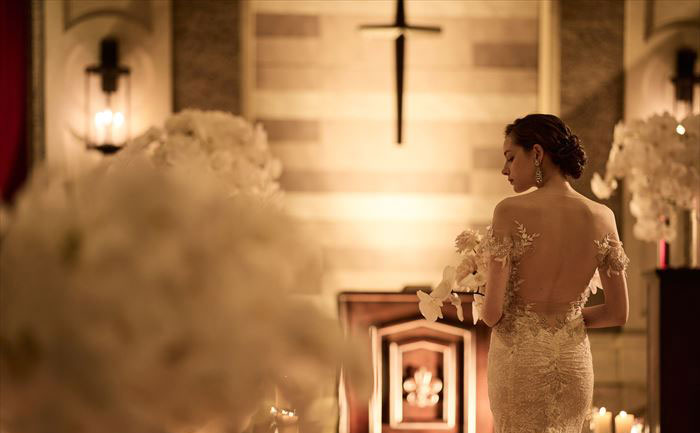 気品高いベルベットローズのバージンロードとアヴェマリアが特別な挙式を演出