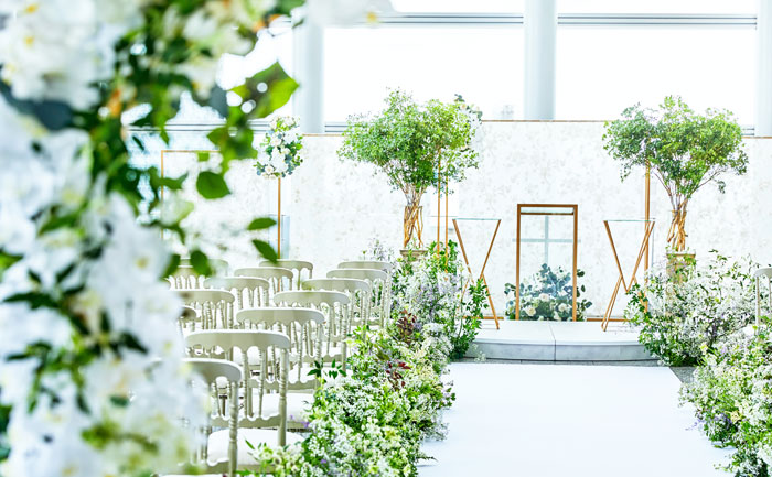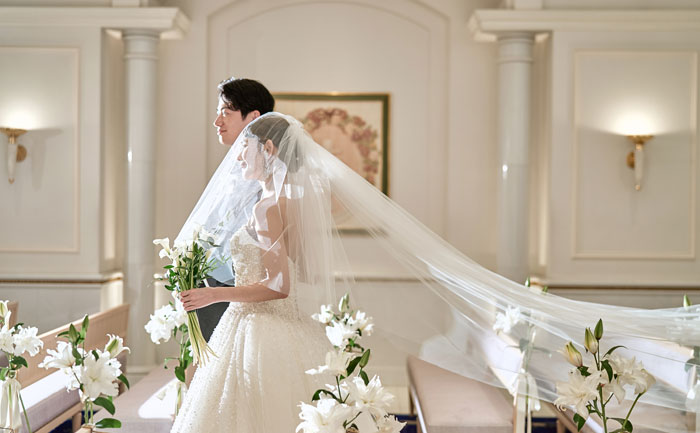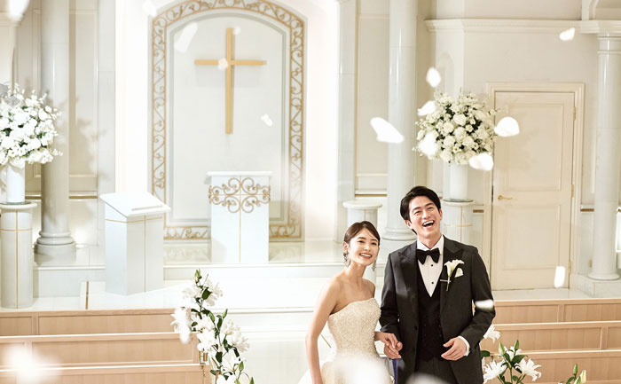 大理石のバージンロードが印象的な、花嫁憧れの純白のチャペル。名古屋の街を見渡すパノラマビューを独占し、開放感に満ちた誓いが叶うスカイストリート。歴史ある熱田神宮の御神符を奉納した由緒正しい神殿。ふたりらしい舞台で、人生の大切な瞬間を迎えて。