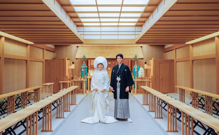 厳粛でありながら清楚な美しさが息づく神殿。古式に則った雅やかな儀式が叶う。
