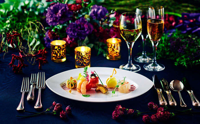 大切なゲストにふたりの感謝の想いを伝えるのは、ホテルオークラ京都が誇る、五感で味わう美味なる料理。豊富なバリエーションを用意し、心に残る豊かな時間を提供する。