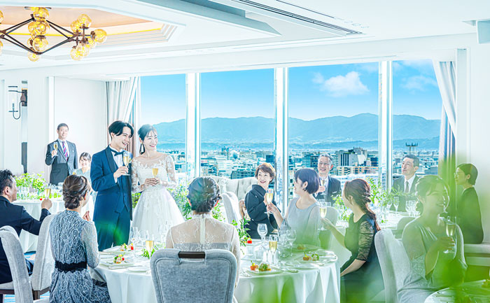 京都を一望するスカイバンケットをはじめ、邸宅を思わせる貴賓室など、個性豊かなバンケットが揃う。ふたりが思い描く雰囲気で、笑顔の絶えない祝宴のひとときを。