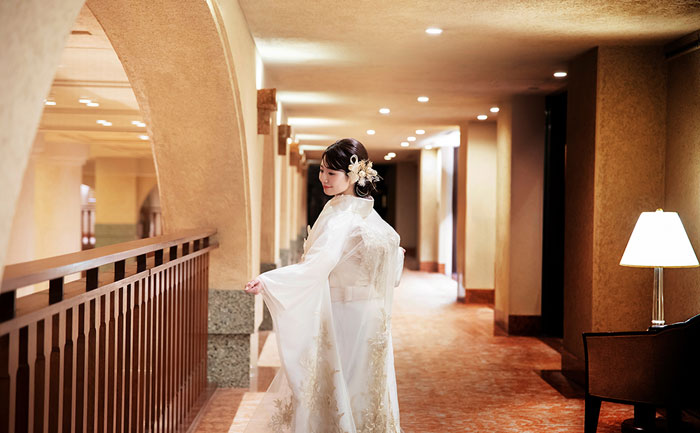 京都の美意識を残す荘厳でクラシカルな空間は、和装の花嫁姿も素敵に似合う。