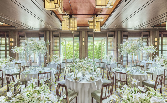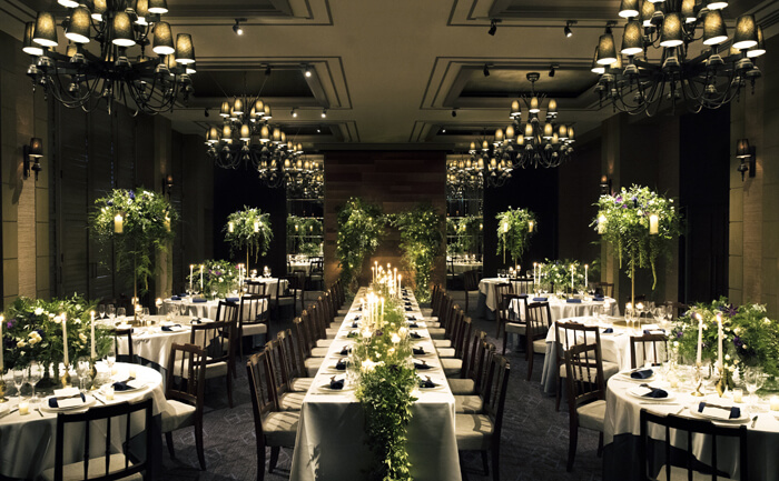 ホテルの中にいながら、ゲストを邸宅に招いたようなプライベート感溢れるパーティが実現できる4つのバンケットルームを完備。ゲスト人数やスタイルに合わせて、装花やコーディネートもふたりらしく選ぶことができる。