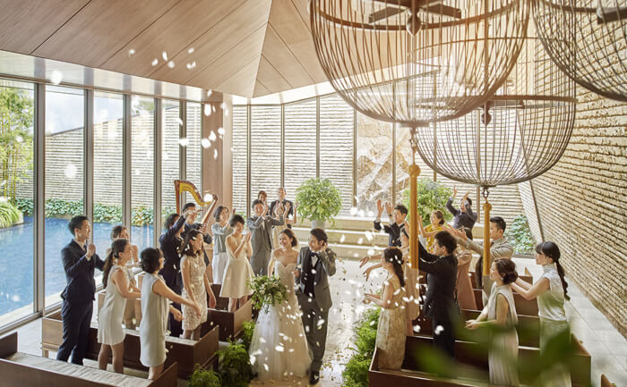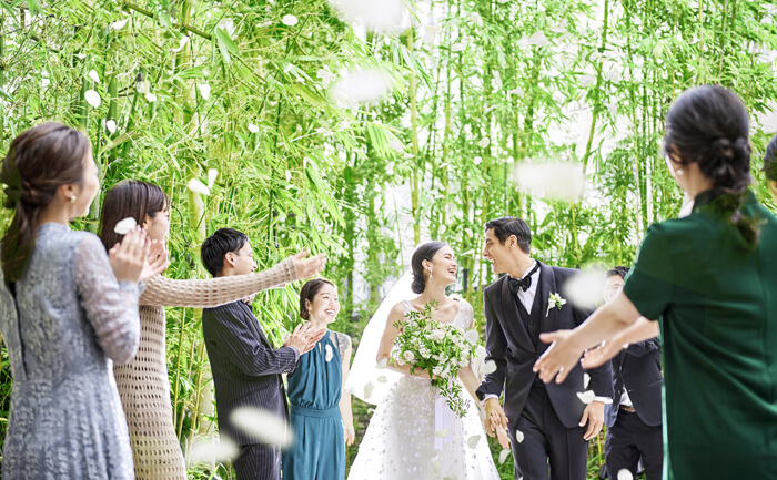ゲストからのフラワーシャワーと祝福の拍手を受けながら退場するシーンは一生の思い出として心に刻まれる。