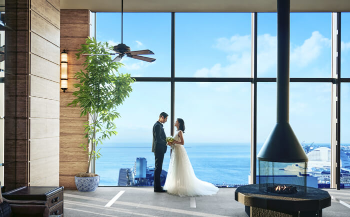 結婚式当日、神戸の絶景を望む広々とした客室をプレゼント。ふたりで過ごす特別な思い出のひとときを。