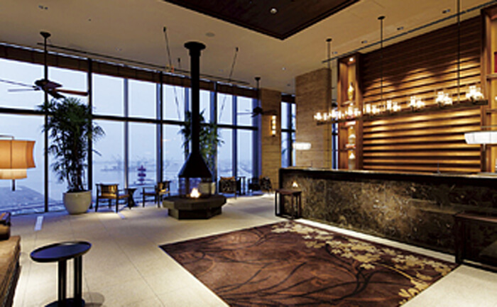 最上階の17階にあるロビーに降り立つと神戸ベイエリアから望む青い海と空がどこまでも広がる。